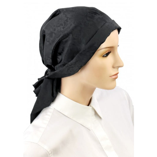 Silk Mini Calypso Headscarf, Black Jacquard