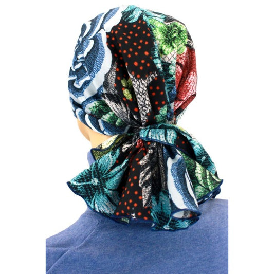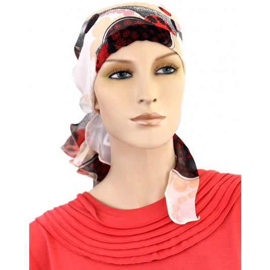 Silk Mini Calypso Headscarf, Red Flowers and Dots