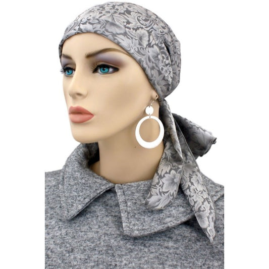 Silk Mini Calypso Headscarf, Grey Jacquard
