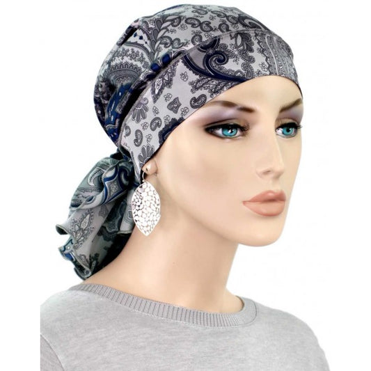 Silk Mini Calypso Headscarf, Navy Paisley