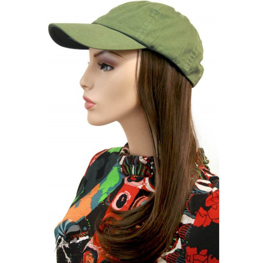 Khaki Baseball Cap with Hairpiece