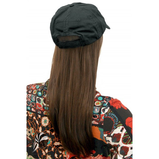 Black Baseball Cap with Hairpiece