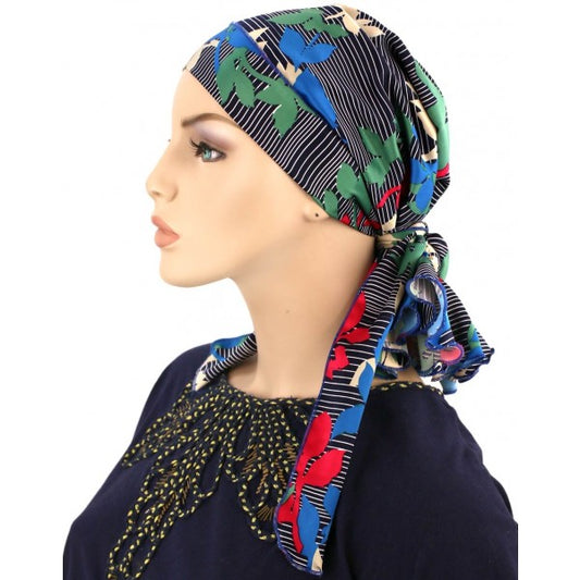 Mini Calypso Headscarf, Leaves on Navy